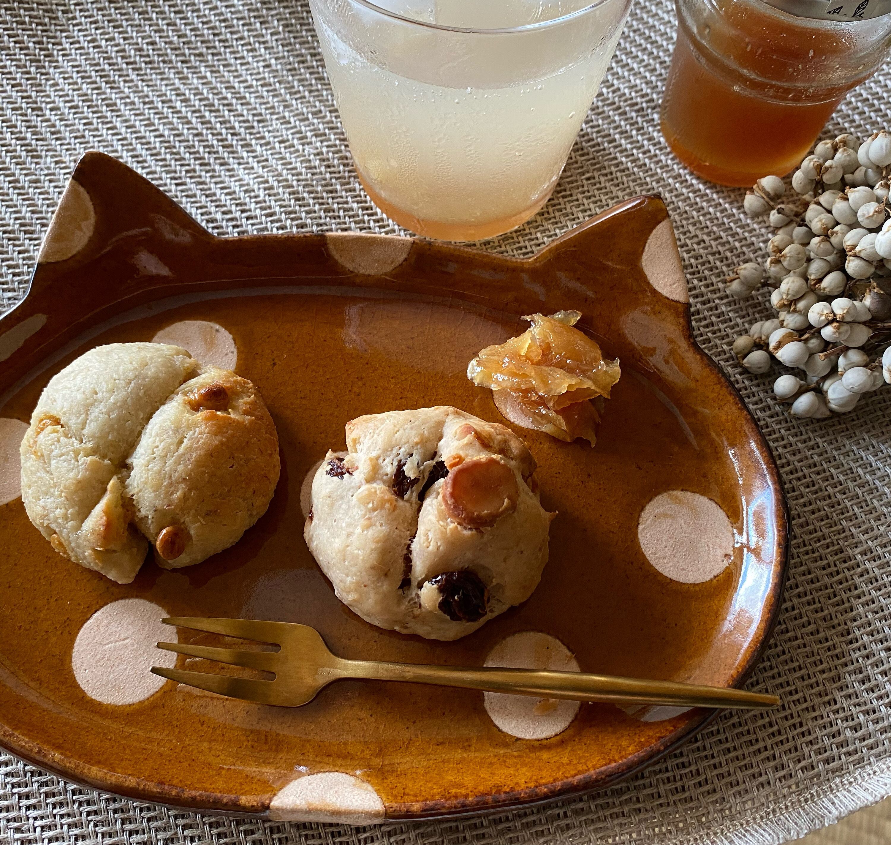 国産米粉、米麹甘酒、バナナ、無塩バター、きび砂糖、ココナッツ、キャラメルチョコ、片栗粉、国産オオバコ、天然酵母、塩
